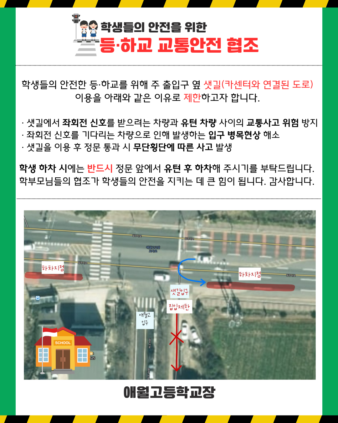 [애월고등학교 등·하교 교통안전을 위한 협조 안내]