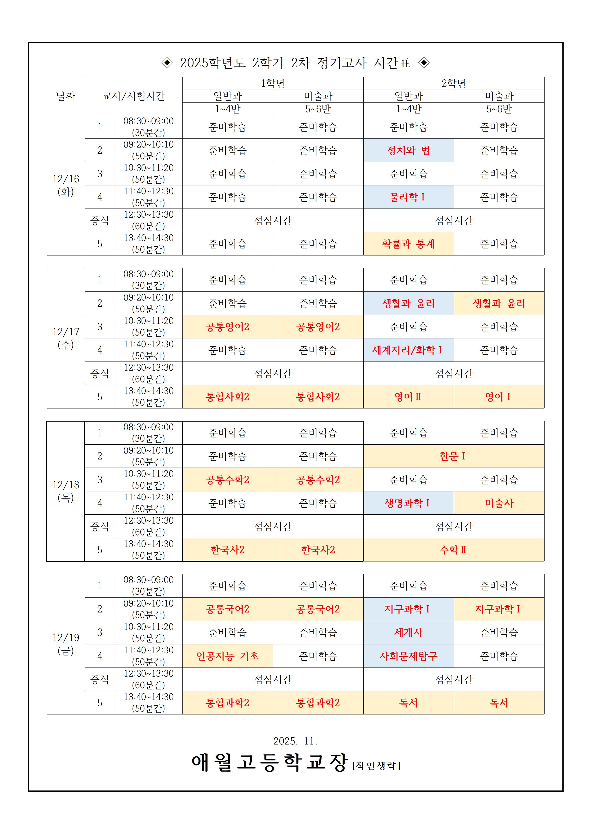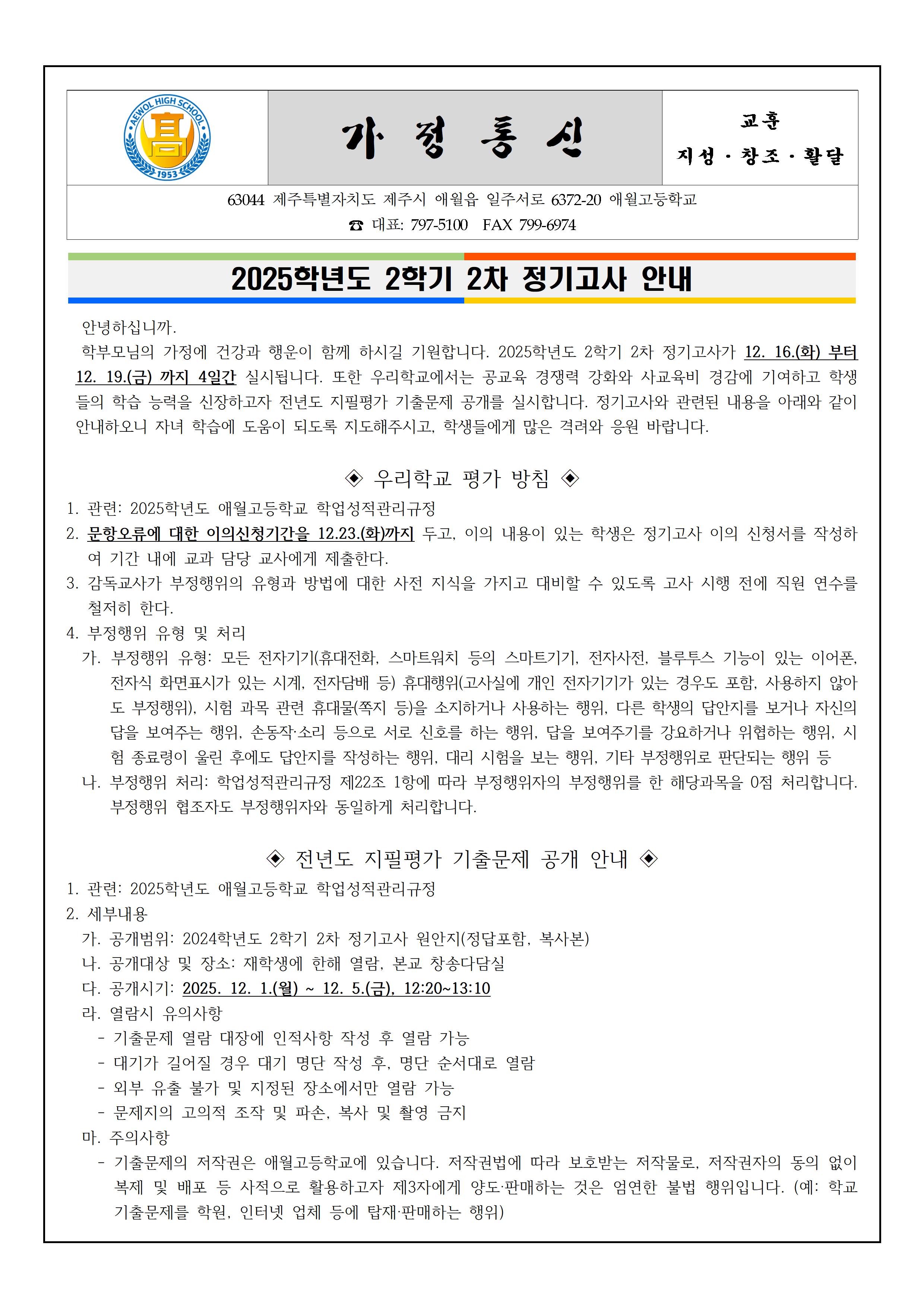 2025학년도 2학기 2차 정기고사 안내 가정통신문.pdf