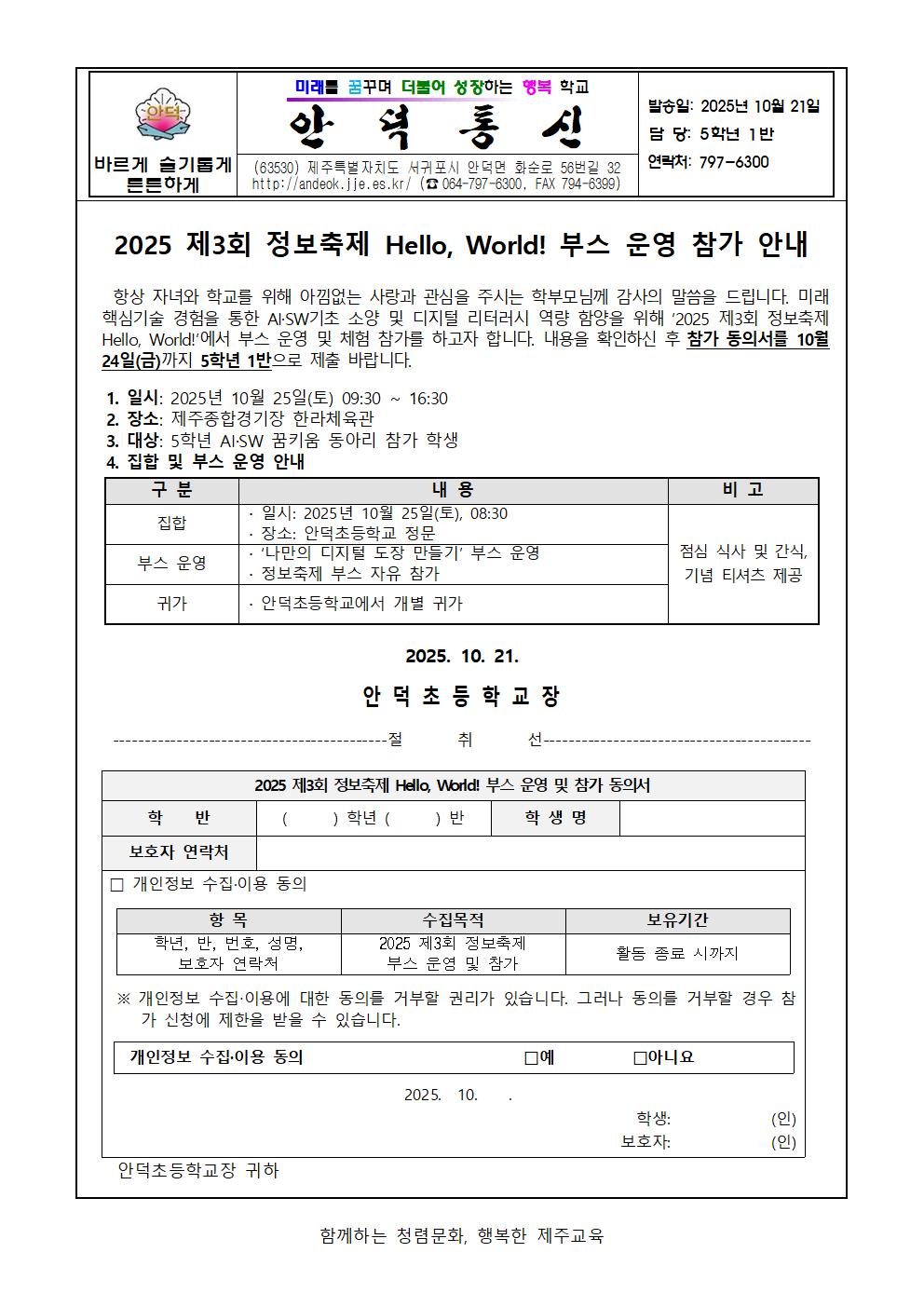 2025 제3회 정보축제 Hello, World! 부스 운영 참가 안내 *해당 학생만 배부