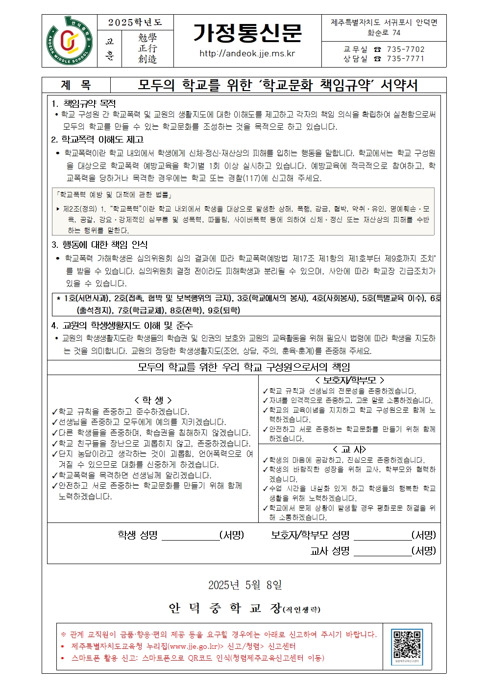 2025학년도 모두의 학교를 위한 학교문화 책임 규약서약서.hwp