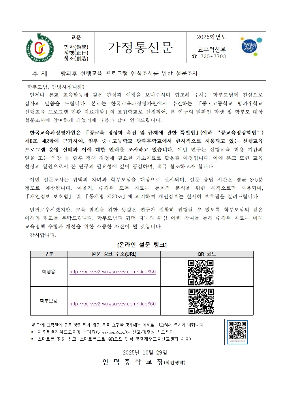 방과후 선행교육 프로그램 인식조사를 위한 설문조사(가정통신문).hwp