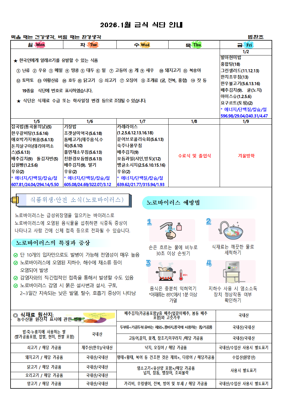 2026년 1월 월간식단 안내