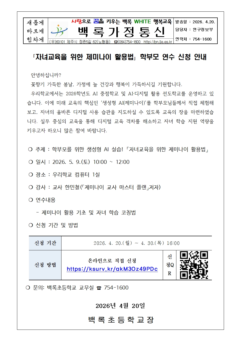 「자녀교육을 위한 제미나이 활용법」 학부모 연수 신청 안내