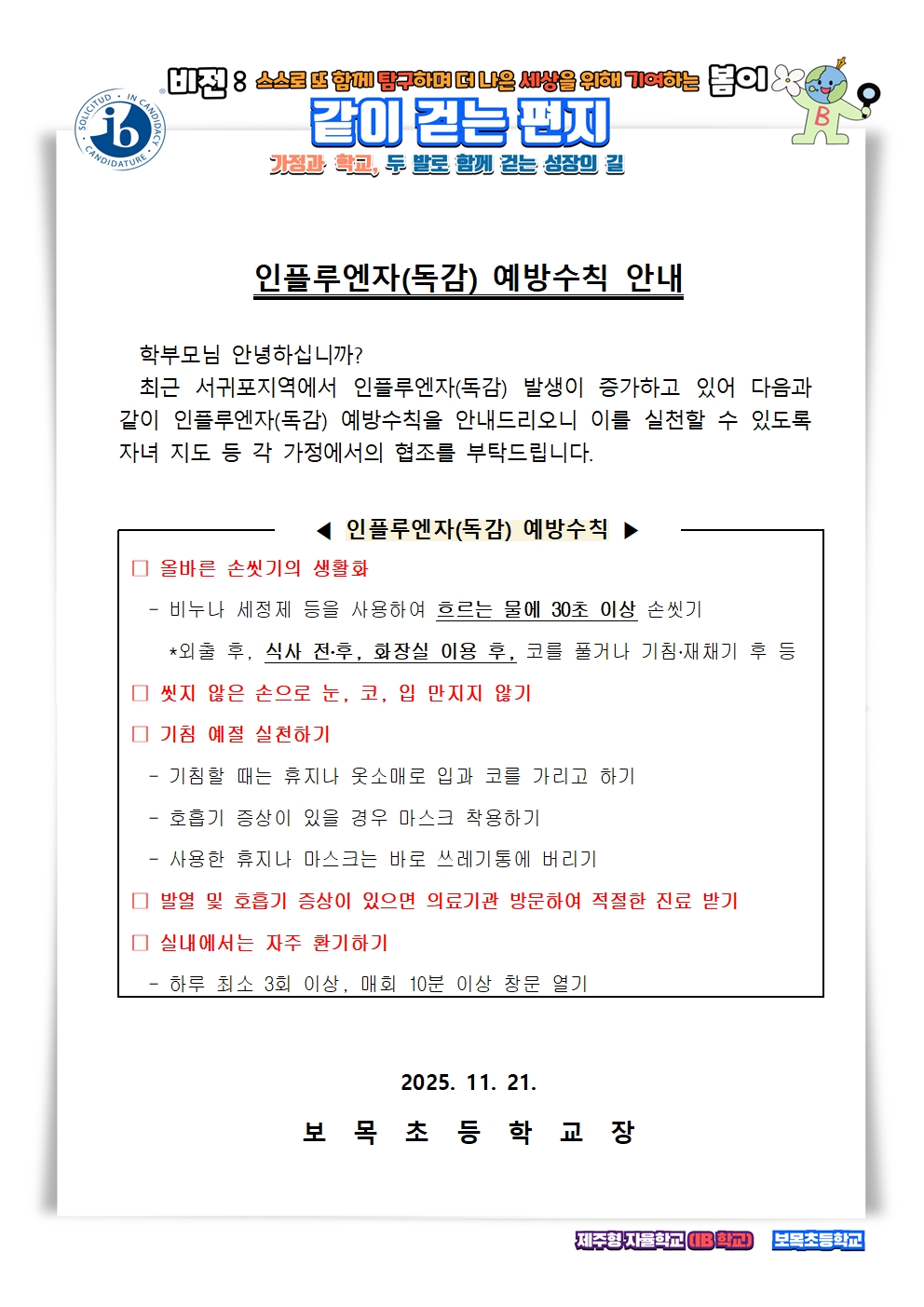 [제주특별자치도교육청 가정통신문] 항생제 내성 예방을 위한 안내