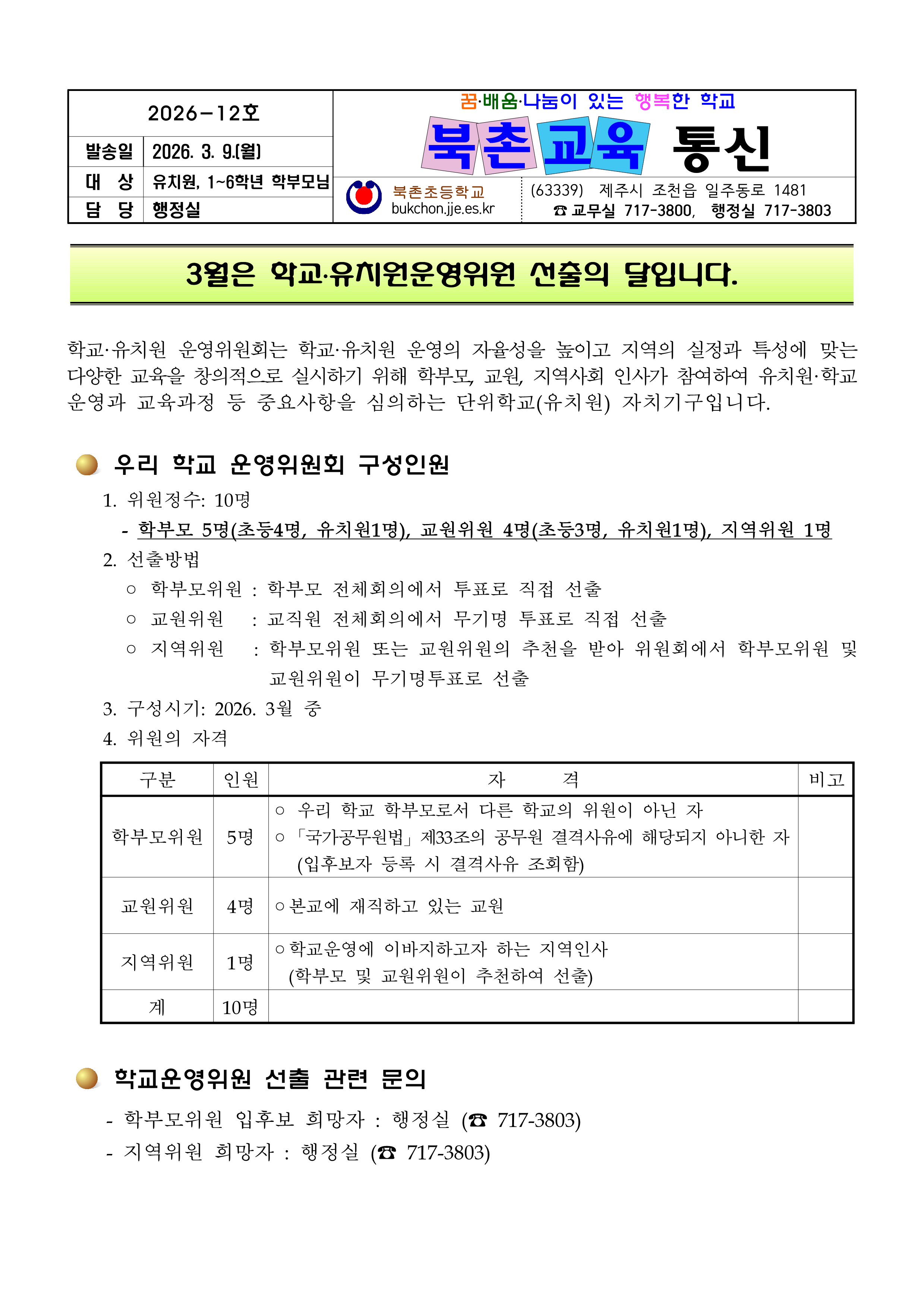 [2026-12호] 2026학년도(제29기) 학교운영위원회 위원 선출 안내