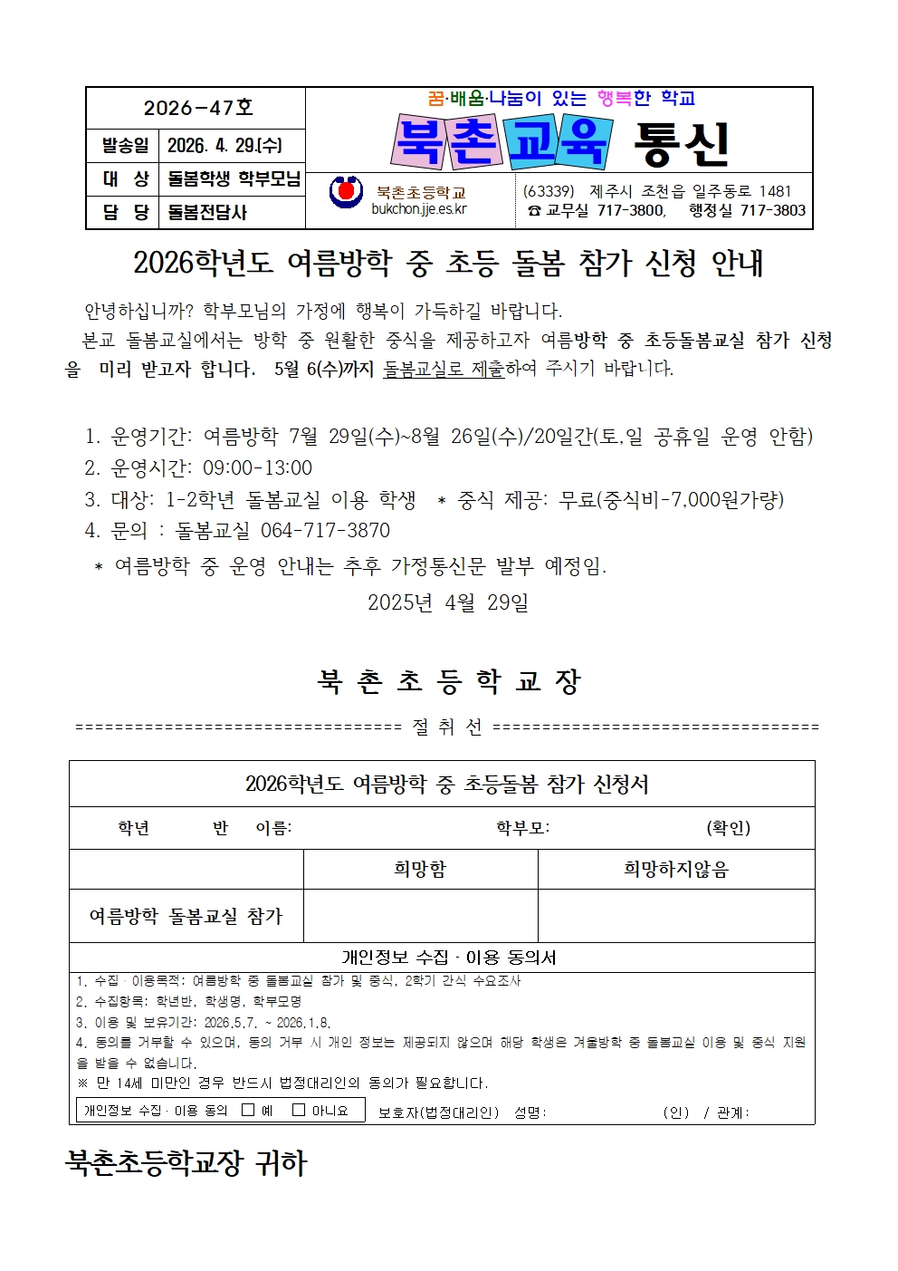 [2026-47호]2026학년도 여름방학 중 초등 돌봄 참가 신청안내