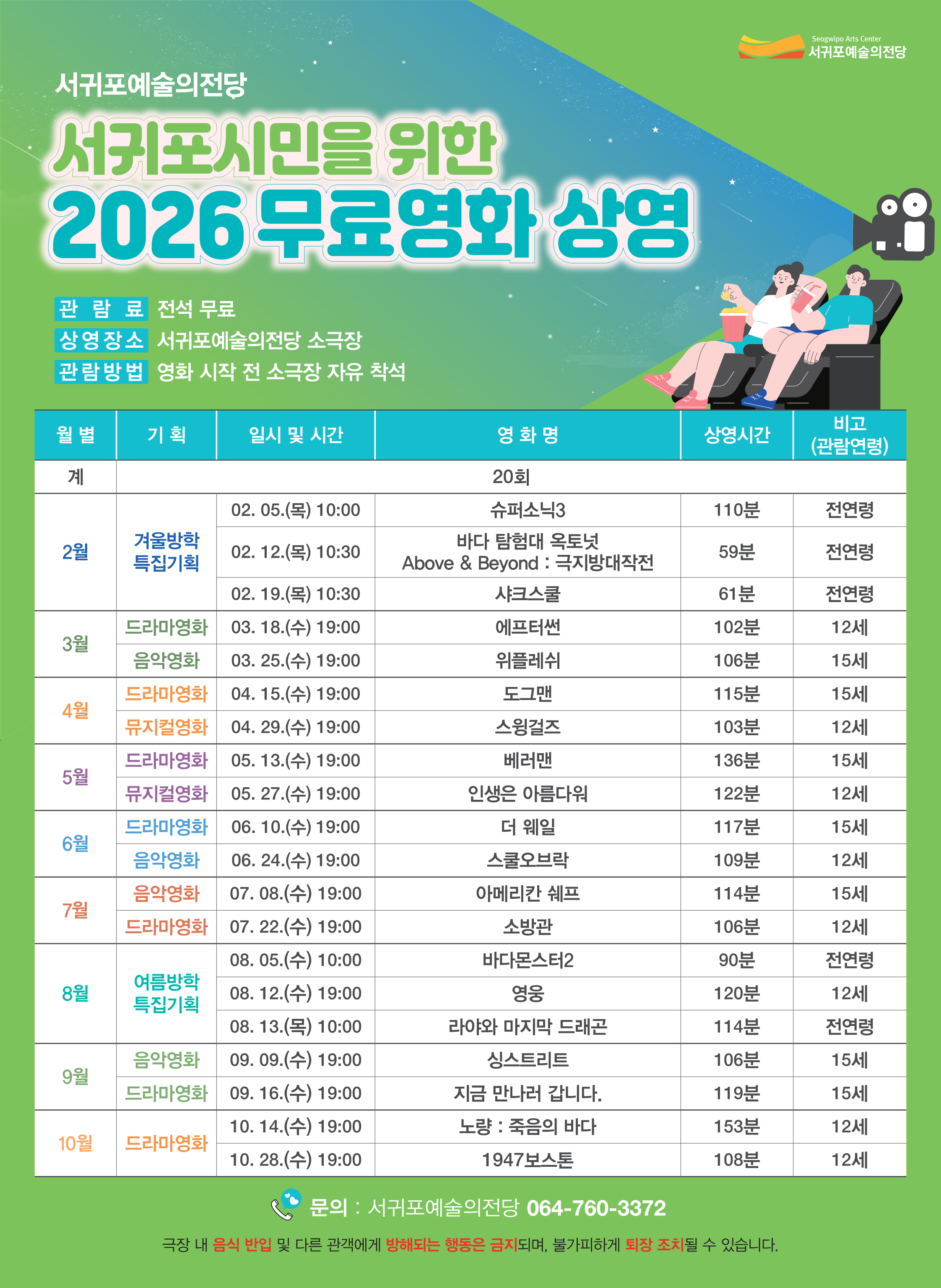 서귀포예술의전당 2026 서귀포시민을 위한 무료영화 상영 안내