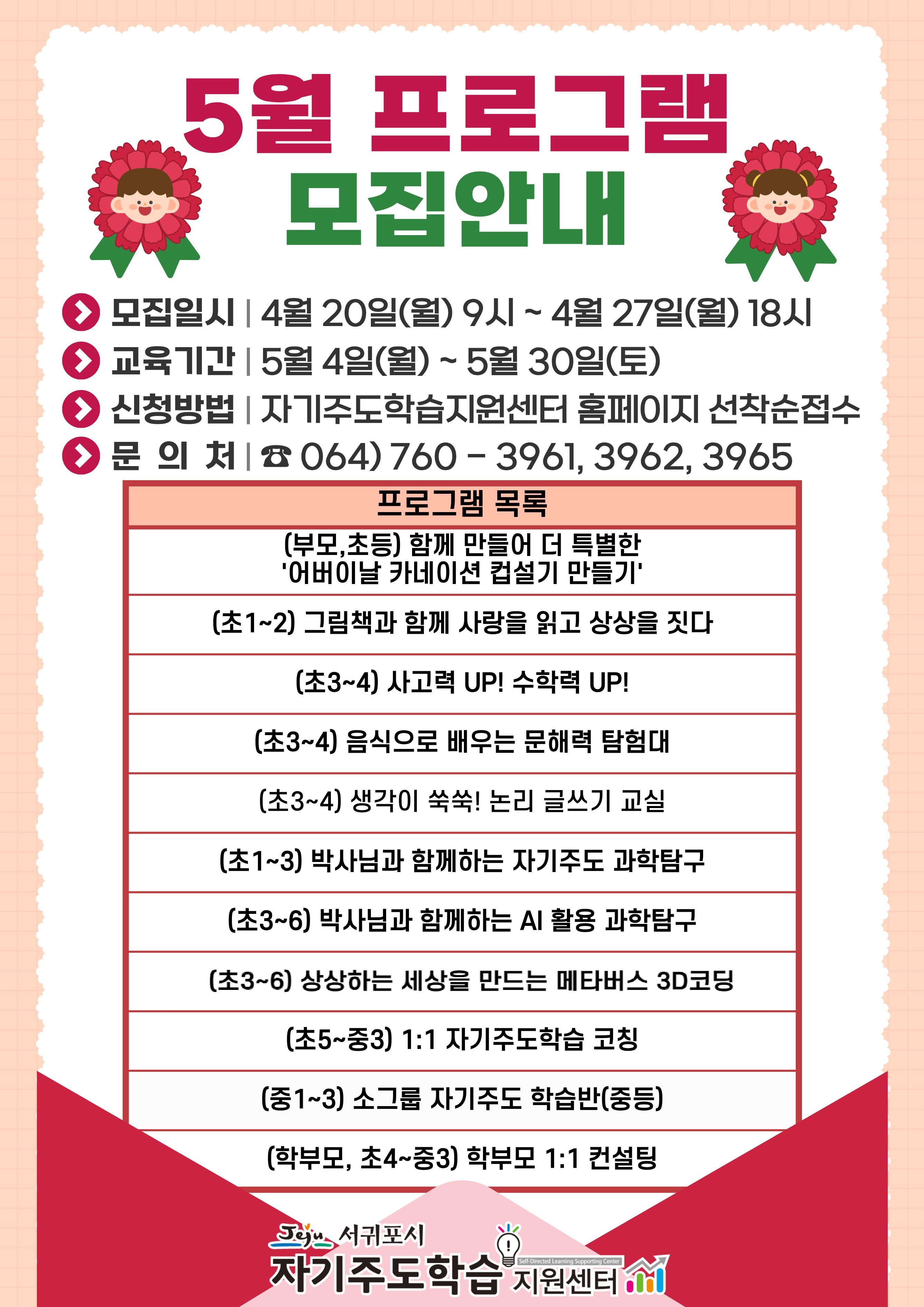 2026년 5월 자기주도학습지원센터 프로그램 수강생 모집 안내