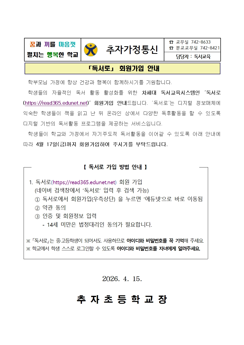 [동녘도서관] 2026년 4기 책 읽어주기 교실 참가자 모집 안내