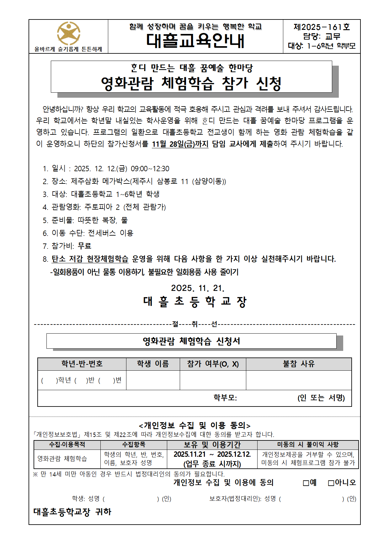 [제주특별자치도교육청 가정통신문]2025 학부모아카데미 11월 프로그램 안내