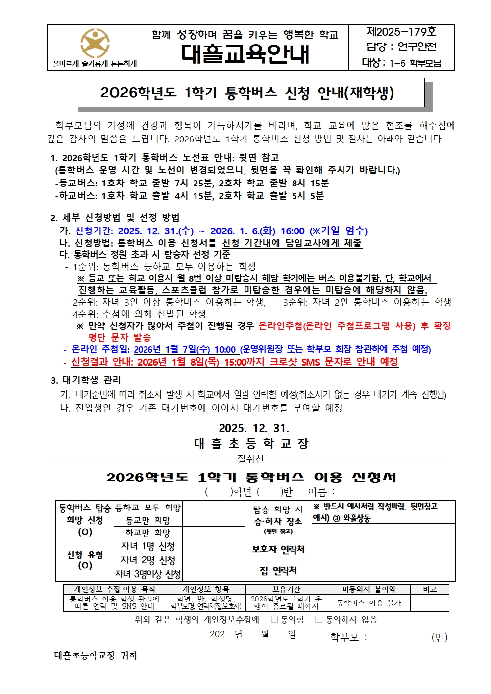 <2025-179호> 2025학년도 1학기 통학버스 신청 안내