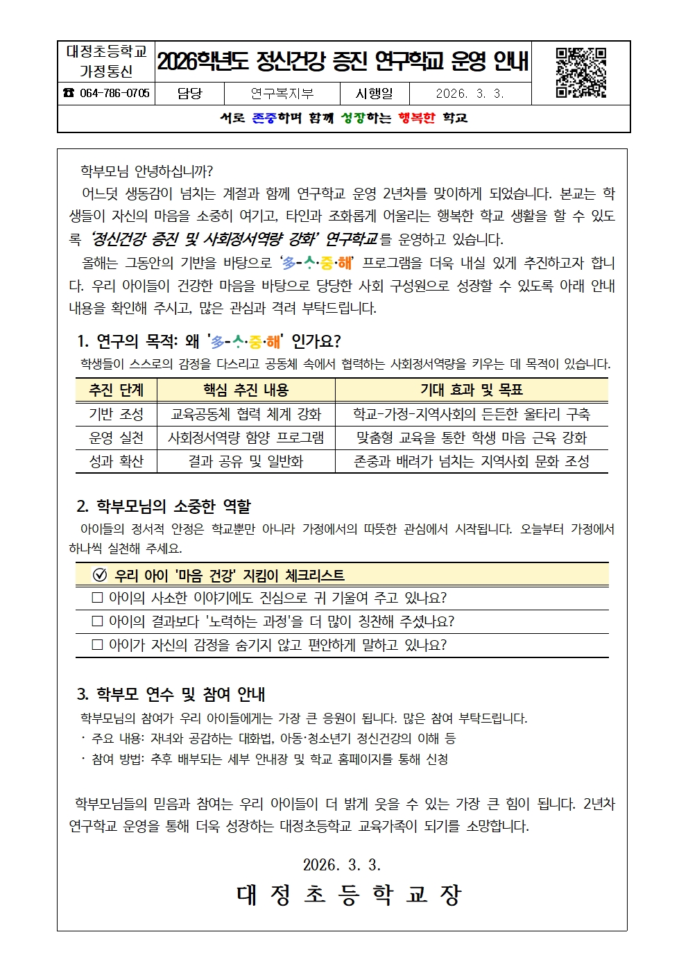 2026학년도 대정초 연구학교 운영 안내