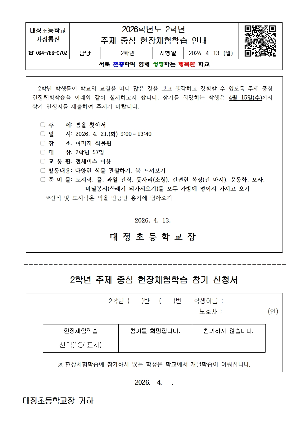 2학년 주제 중심 현장체험학습 참가 신청서.hwp