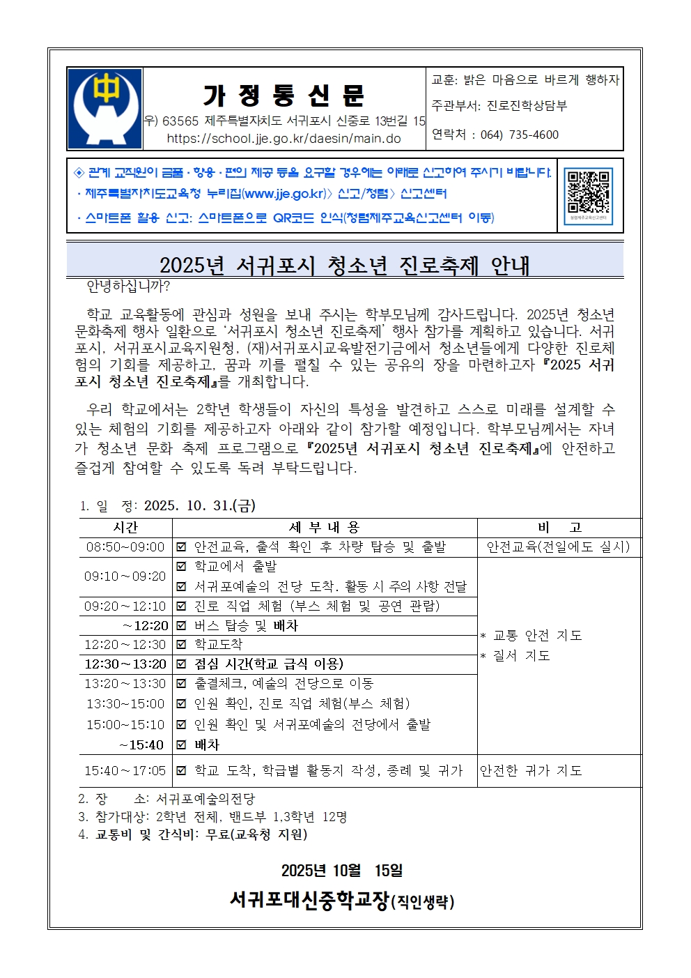 2025년 서귀포시 청소년 진로축제 안내(2학년)