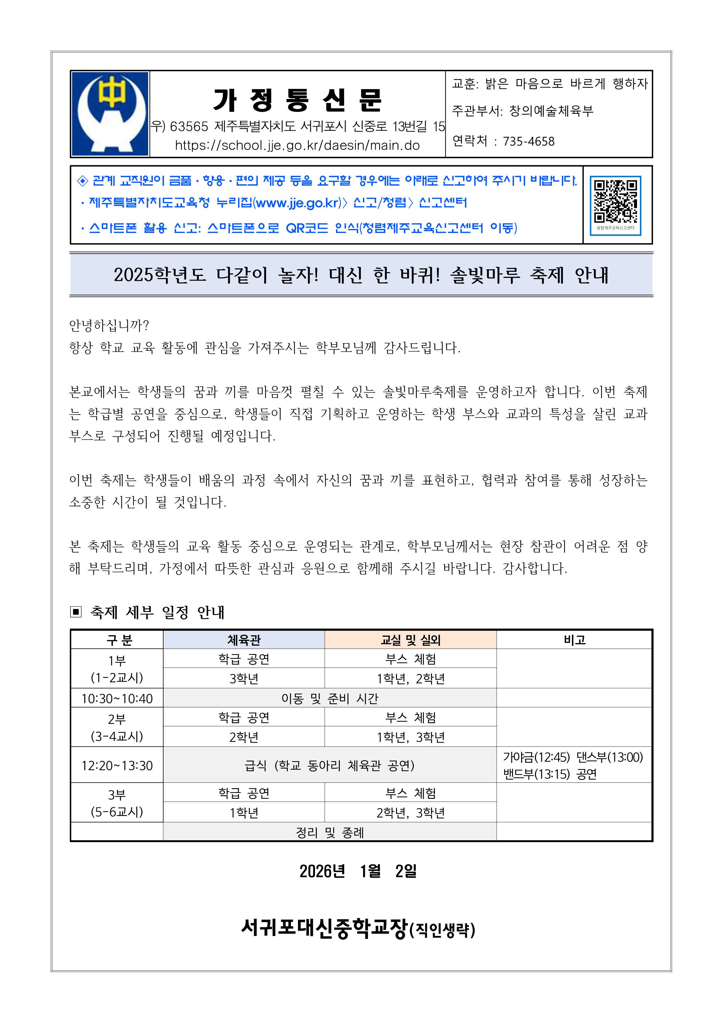 2027학년도 제주시 평준화 일반고 변경사항 안내