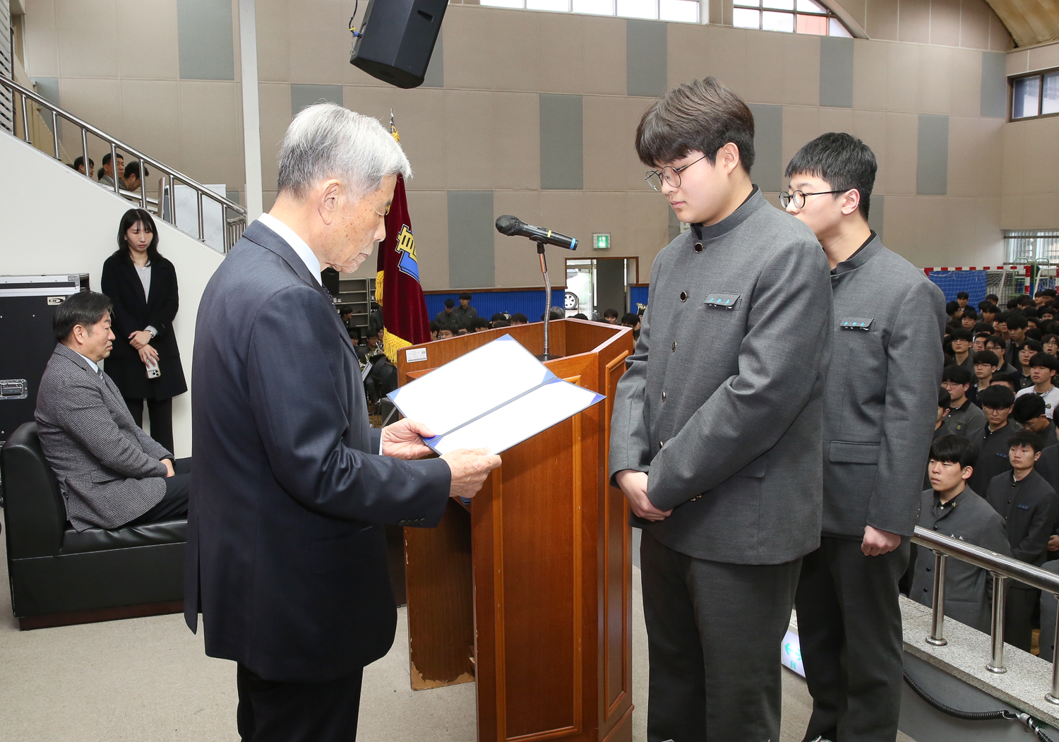 제43회 입학식에서 장학증서와 소정의 장학금을 받았습니다.