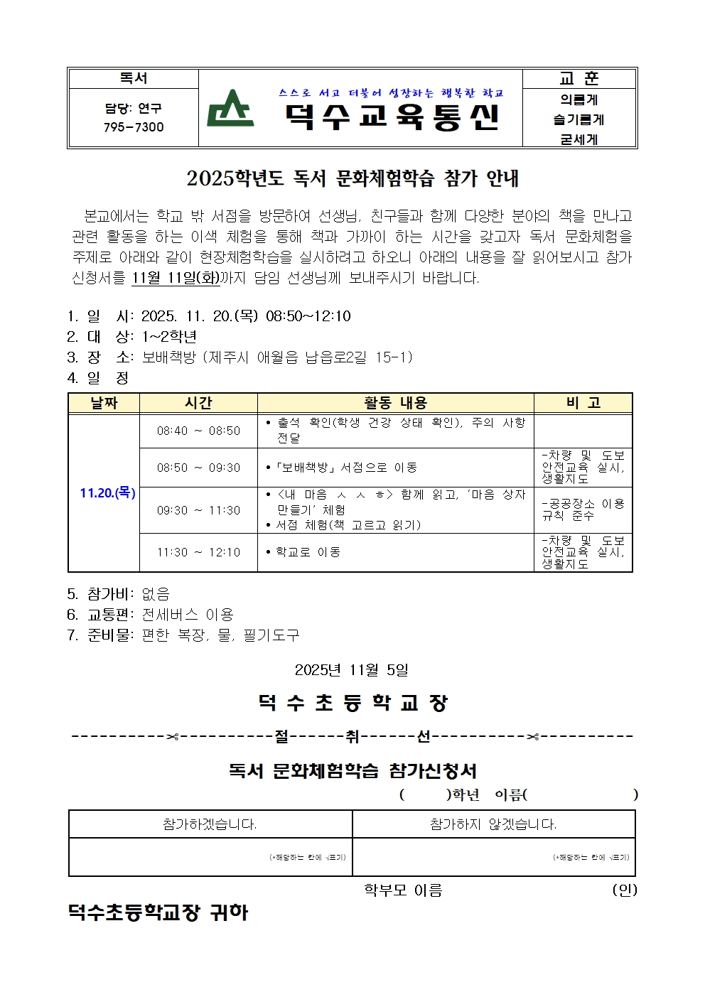 1~2학년 독서 문화체험학습 참가 안내