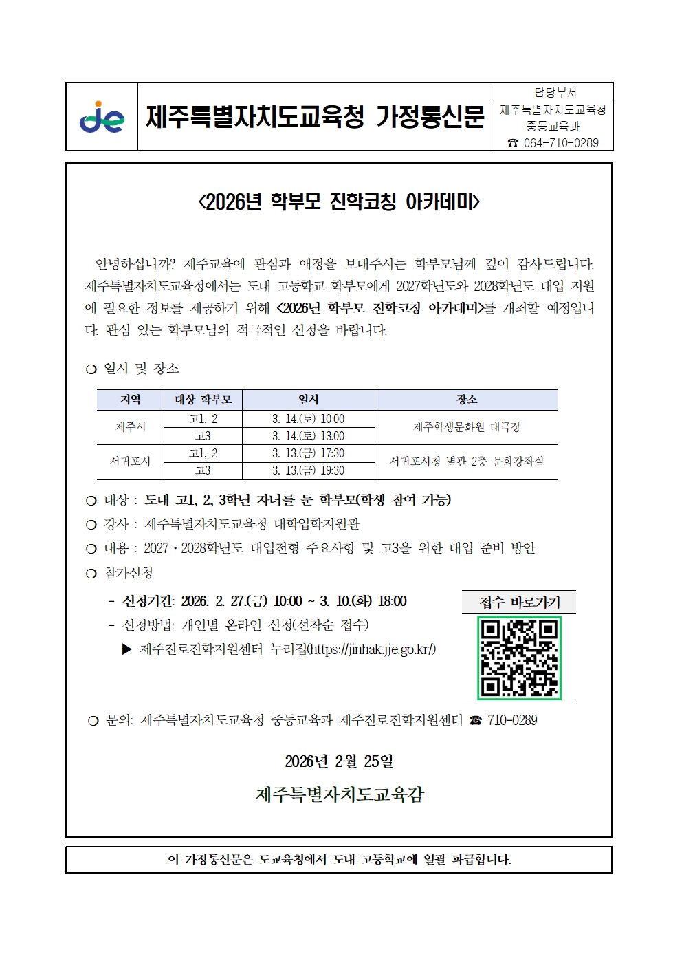 2026년 학부모 진학코칭 아카데미 안내