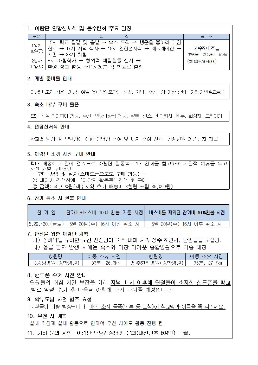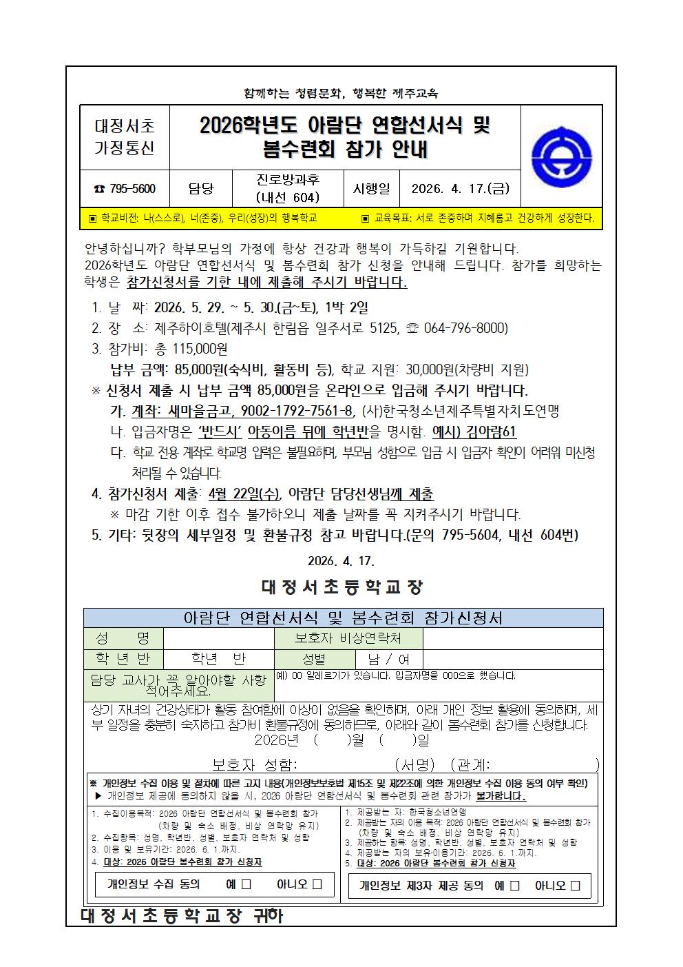 2026학년도 아람단 연합선서식 및 봄수련회 참가 안내