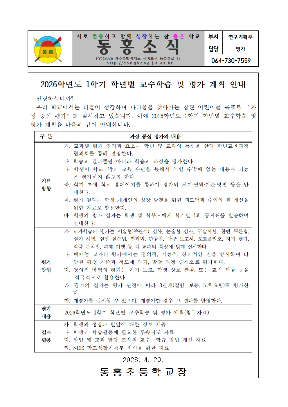 2026학년도 1학기 학년별 교수학습 및 평가계획 안내