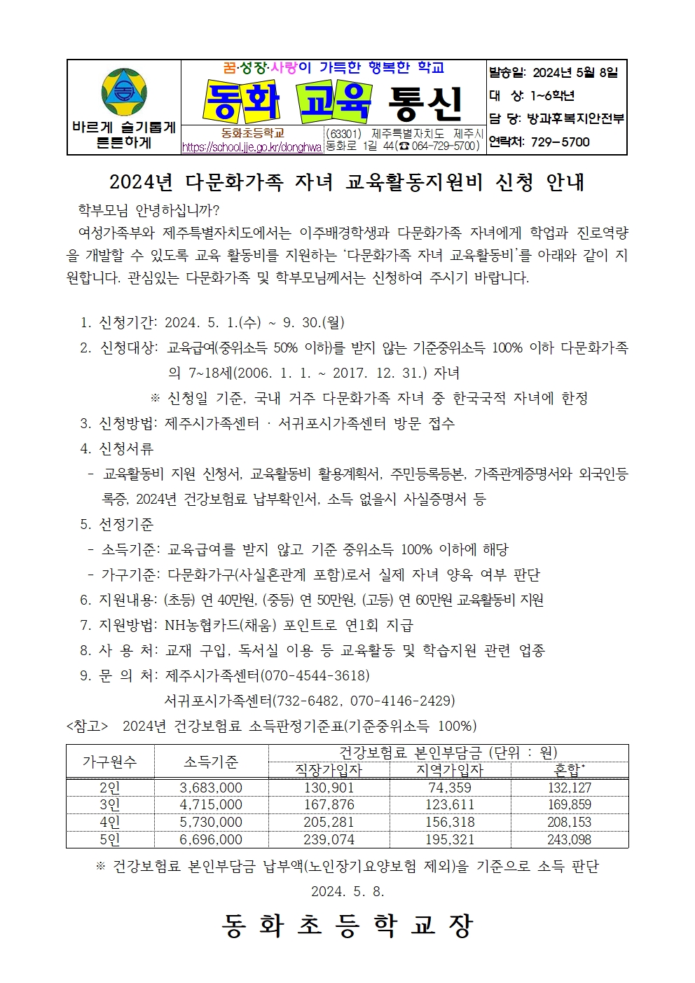 2024년 다문화가족 자녀 교육활동지원비 신청 안내