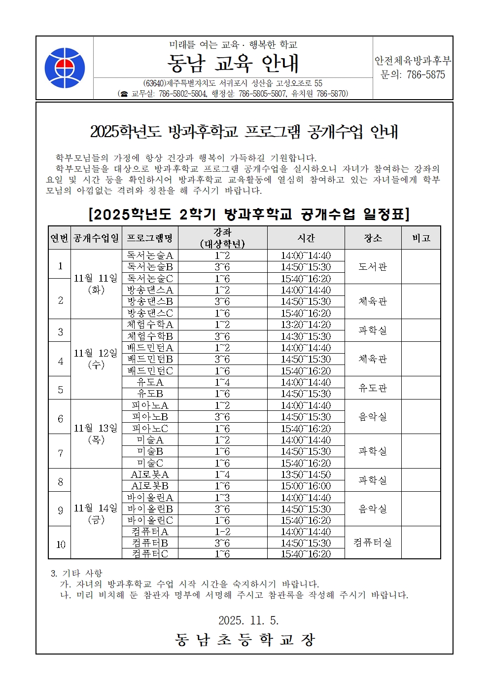 2025학년도 방과후학교 프로그램 공개수업 안내