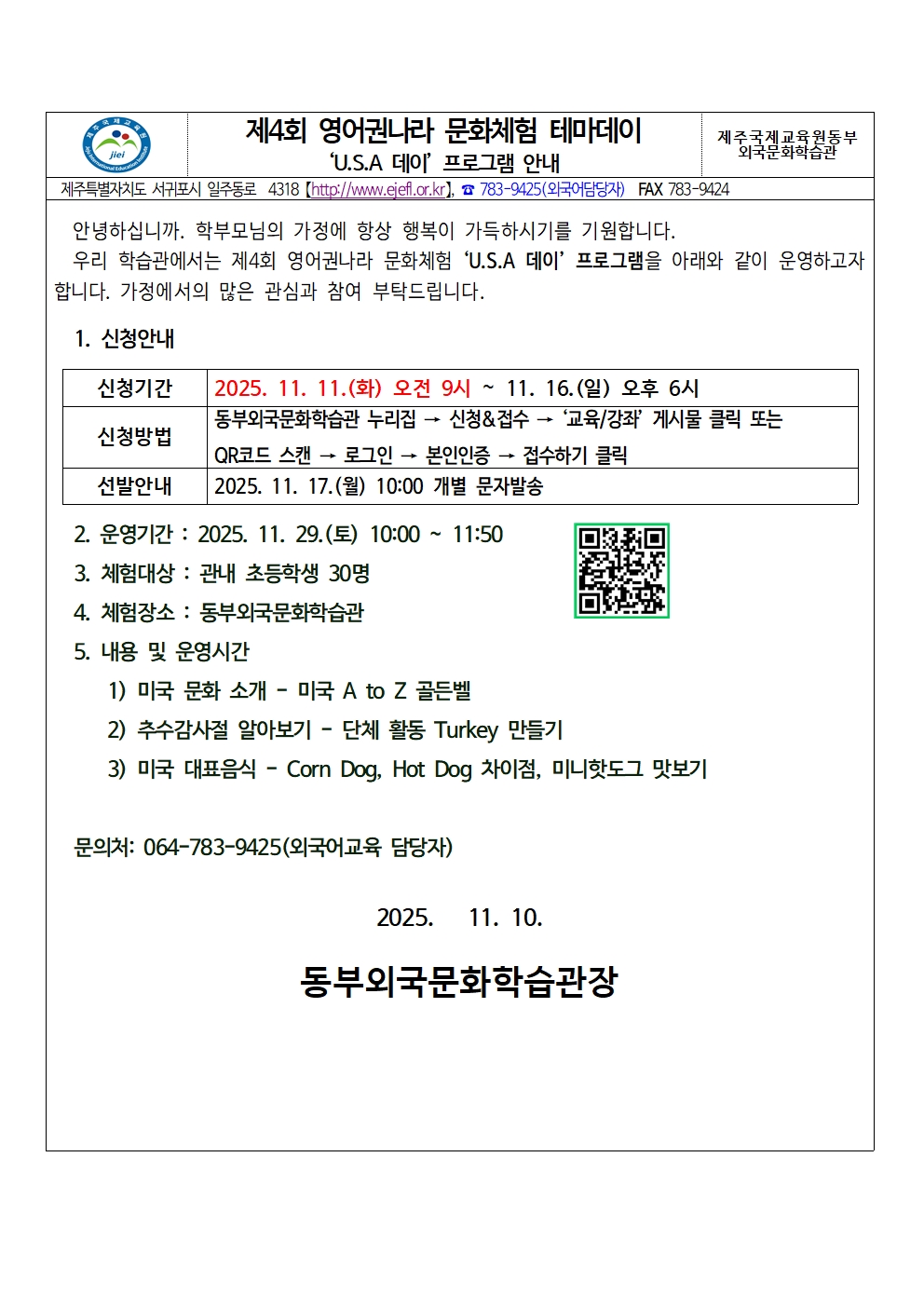 동부외국문화학습관 제4회 영어권나라 문화체험 테마데이 ‘U.S.A 데이’ 프로그램 안내