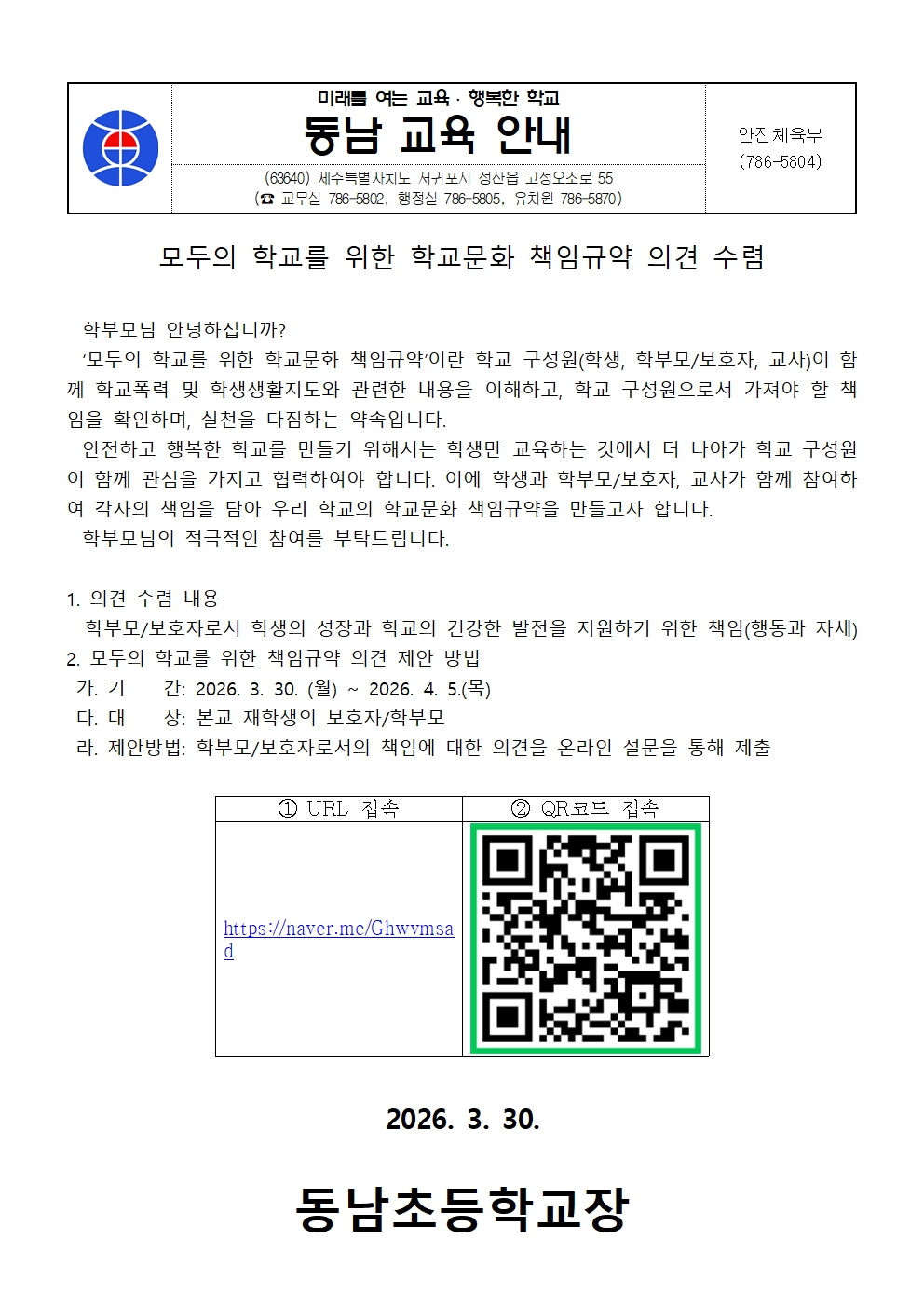 모두의 학교를 위한 학교문화 책임규약 의견 수렴