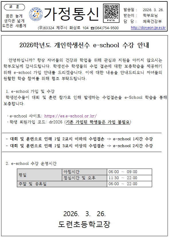 2026학년도 개인학생선수 e-school 수강 안내.hwp