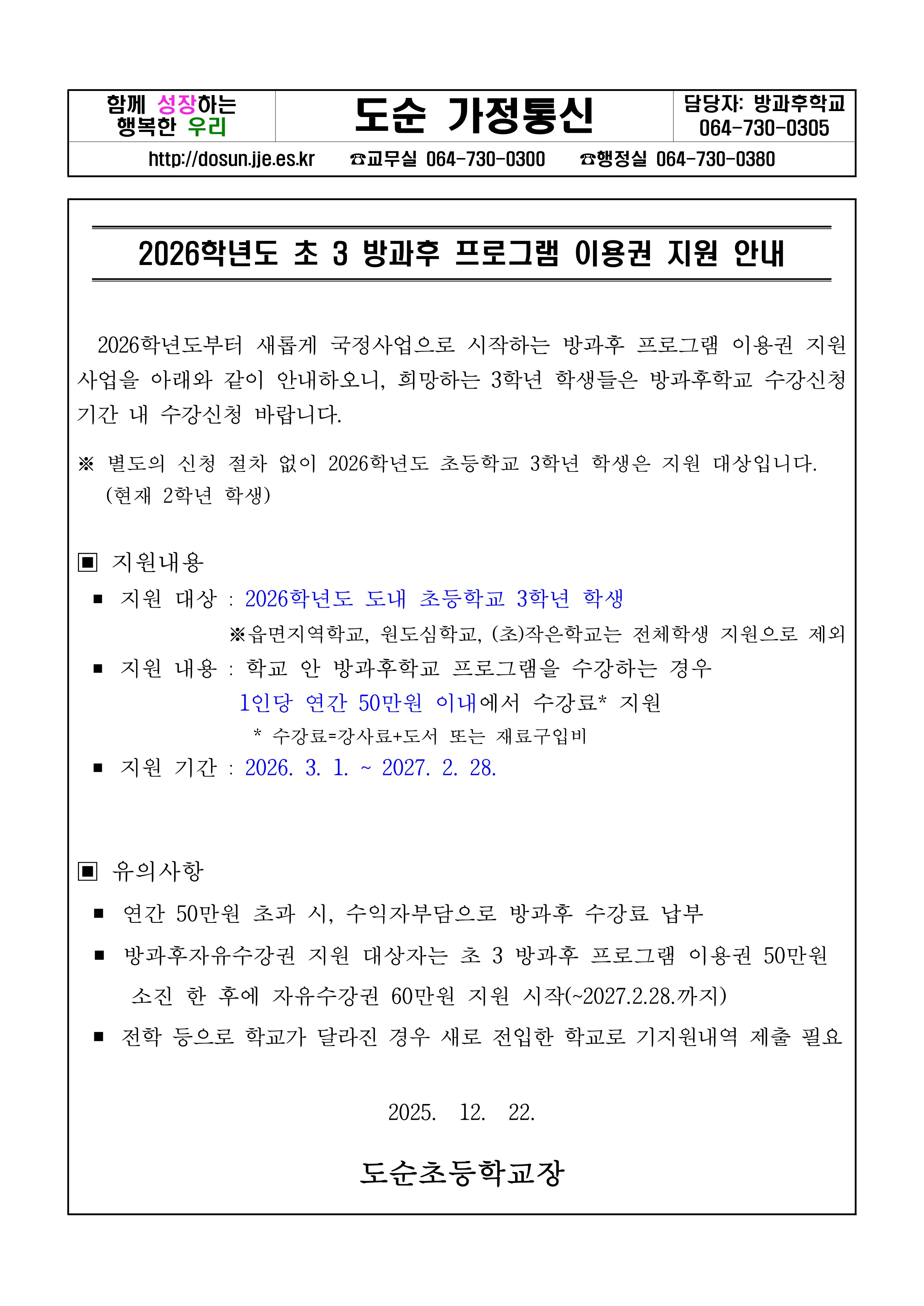 2026학년도 초3 방과후 프로그램 이용권 지원 안내
