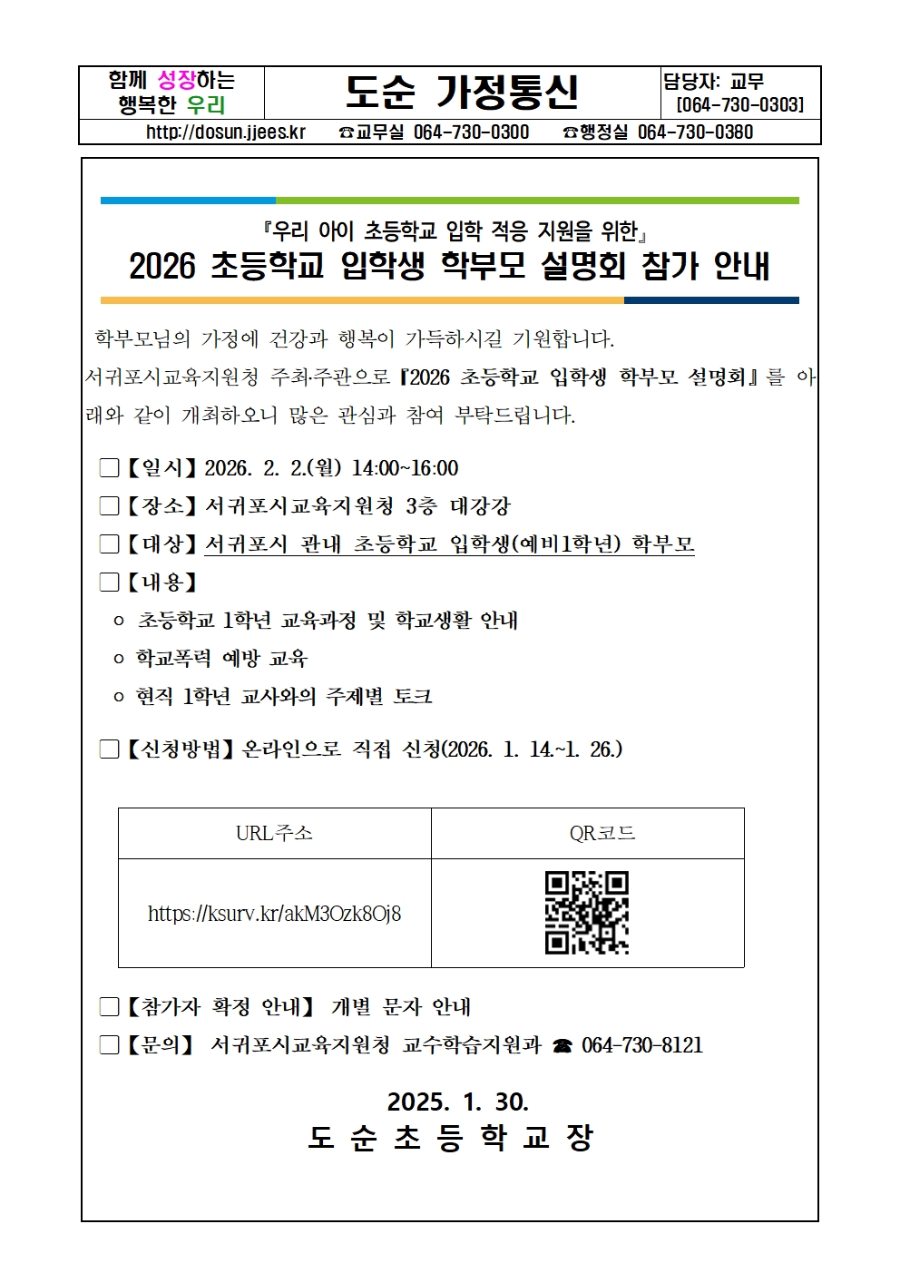 2026 초등학교 입학생 학부모 설명회 참가 안내