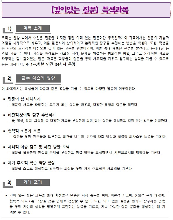 깊이있는 질문 특색과목