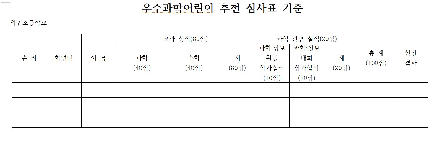 2026학년 과학의 날 우수과학어린이 후보자 심사 기준 안내