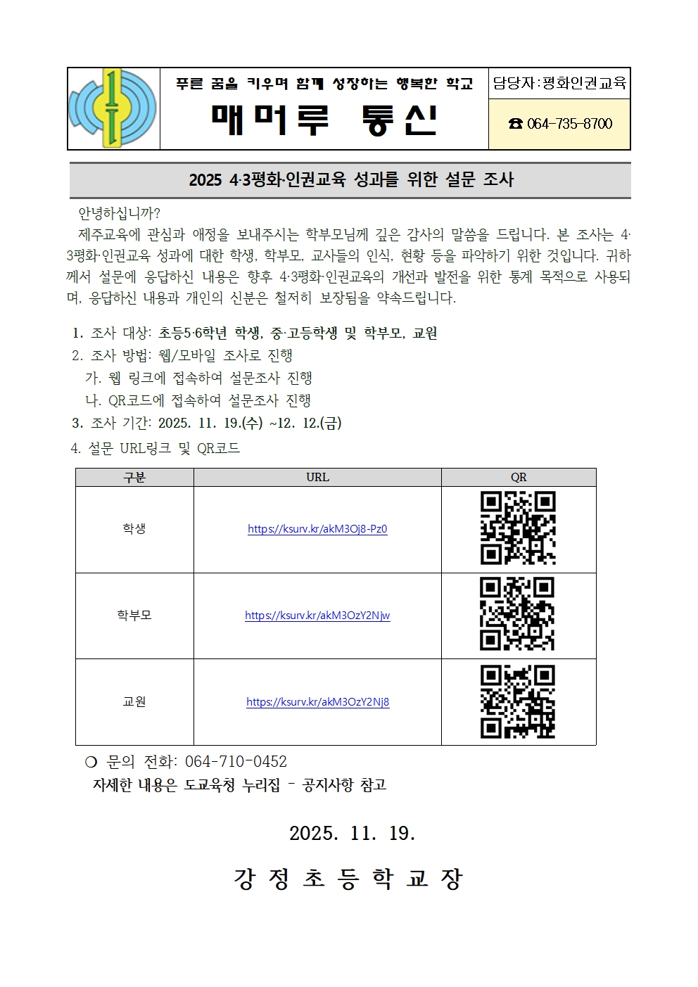 2025년 4·3평화·인권교육 성과 관리를 위한 설문조사 안내