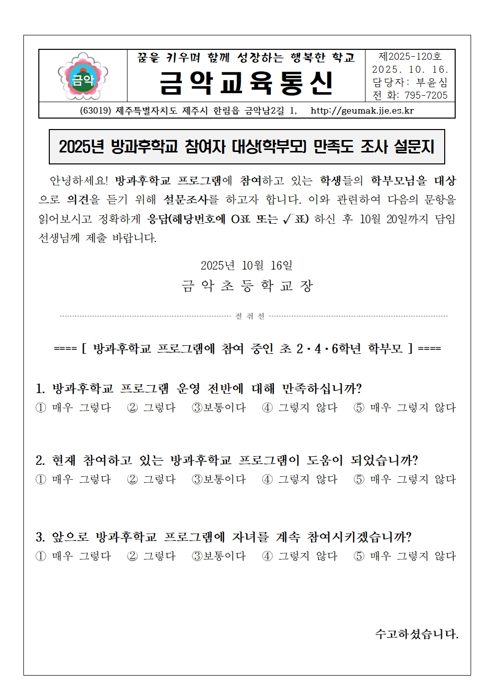 2025년 방과후학교 참여자 대상(학부모) 만족도 조사 설문지