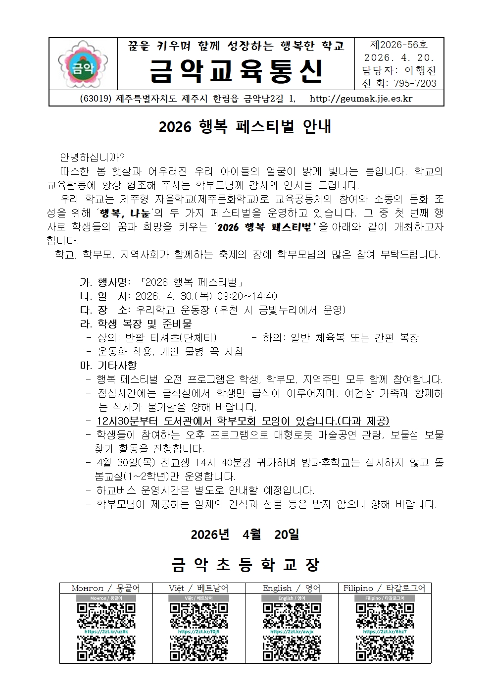 [제주시교육지원청] 2026 어린이 행복 축제 안내