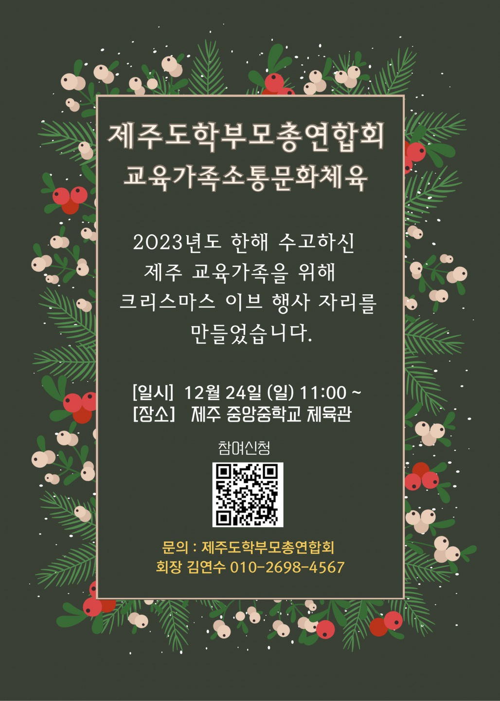 ※ ’23. 12. 22.(금) 이후 신청은 학부모총연합회 회장(010-2698-4567) 전화로 신청