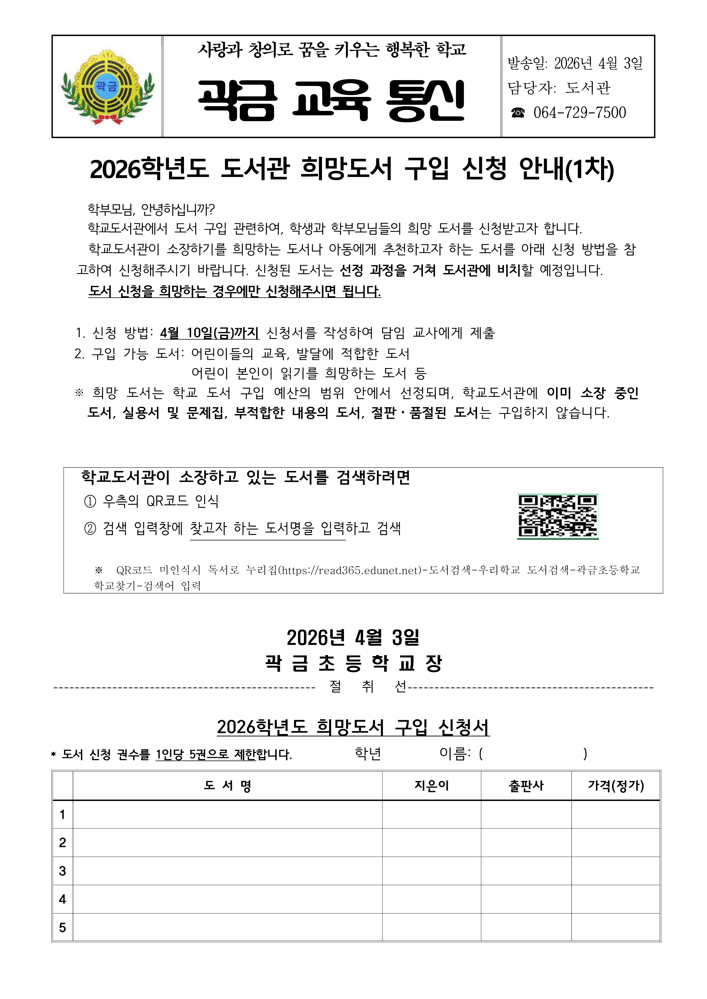 2026학년도 도서관 희망도서 구입 신청 안내(1차)