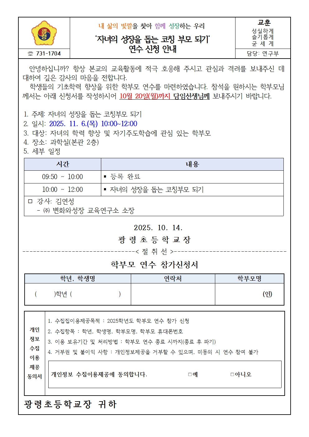 ‘자녀의 성장을 돕는 코칭 부모 되기‘ 연수 신청 안내