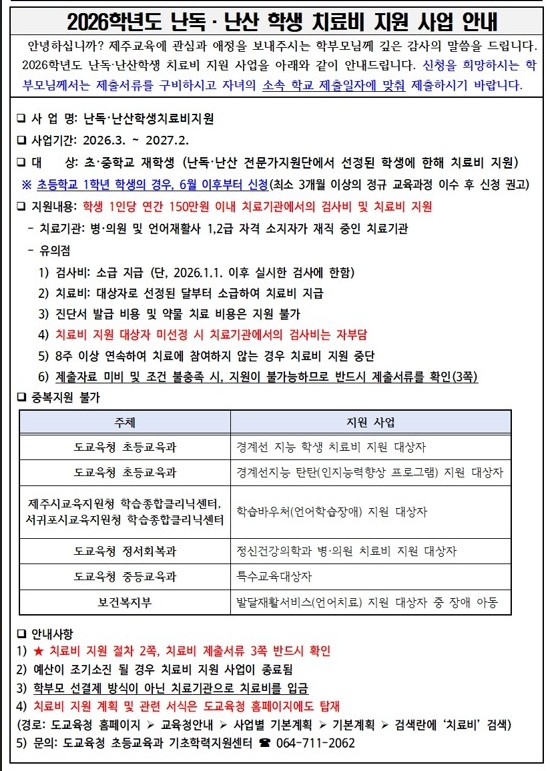 [안내] 2026학년도 난독.난산 학생 치료비 지원 사업