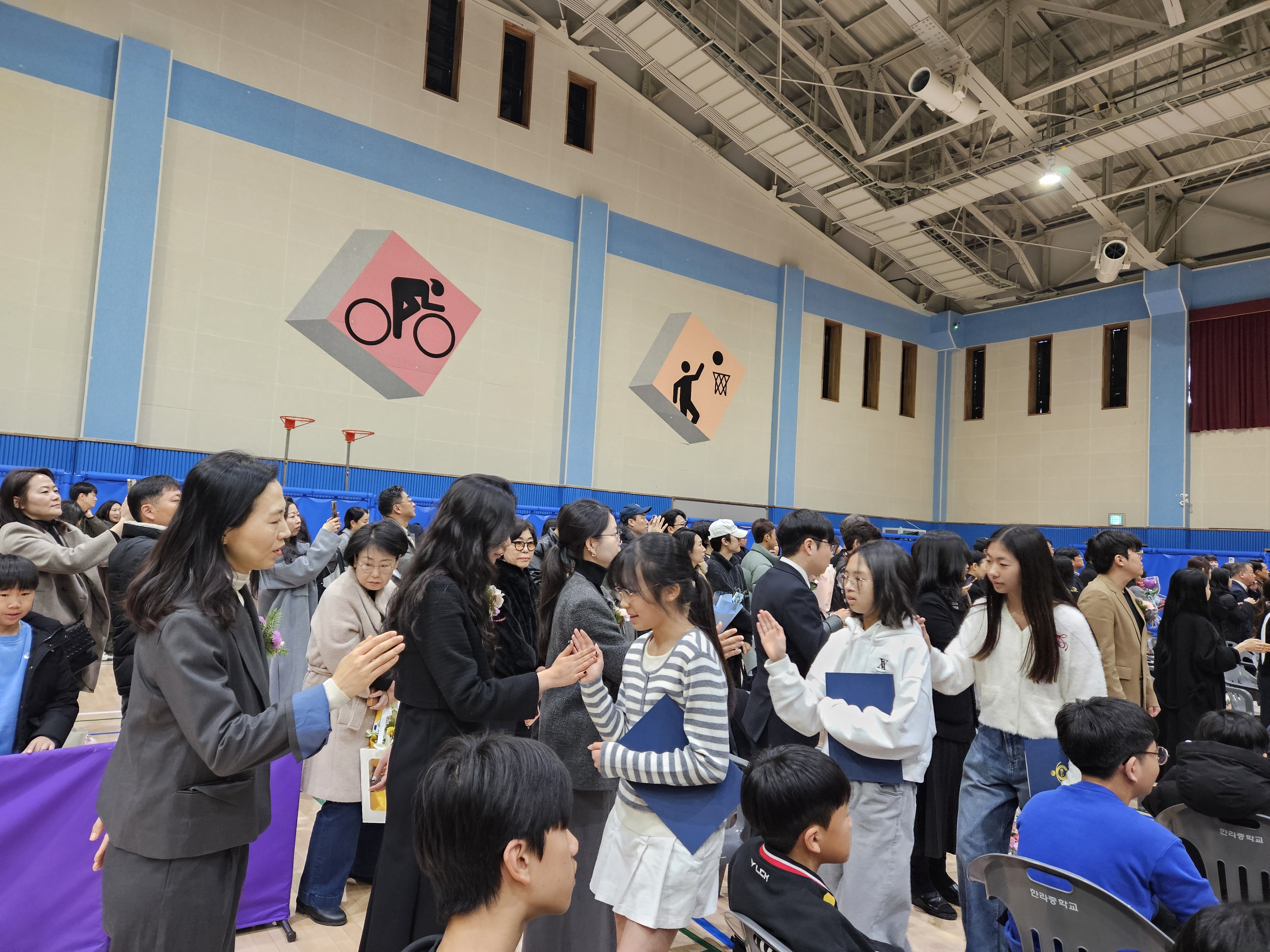 □ 오상남 교장은 축사를 통해 “여러분은 무한한 가능성을 지닌 소중한 존재”라며 “초등학교에서의 배움과 추억을 바탕으로 자신 있게 미래를 향해 나아가길 바란다”고 졸업생들을 격려하였다.