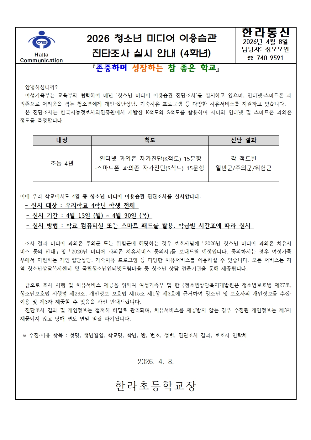 2026 청소년 미디어 이용습관 진단조사 실시 안내 (4학년)