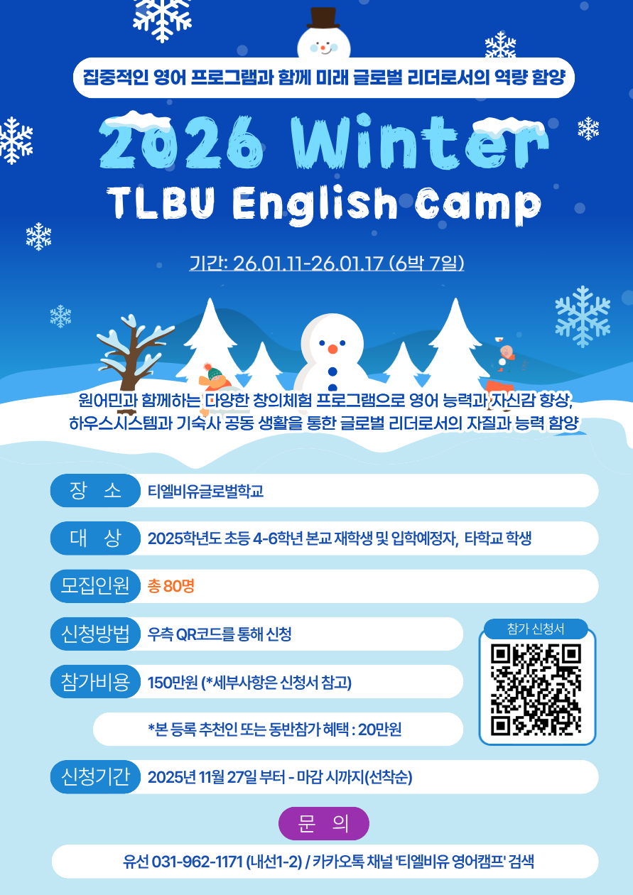 티엘비유글로벌학교_2026 Winter English Camp 신청 안내