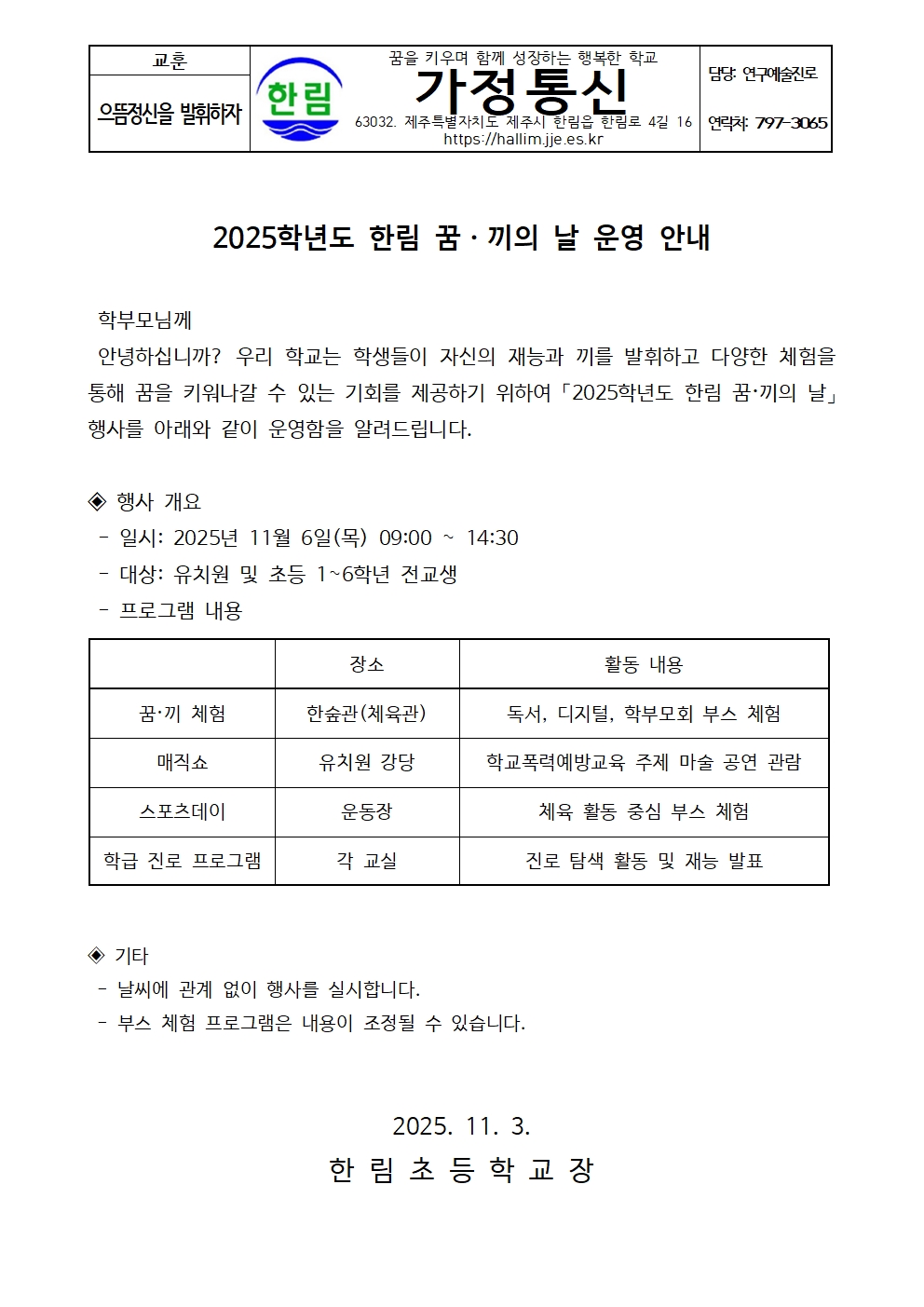(가정통신) 2025 한림 꿈ㆍ끼의 날 운영 안내.pdf