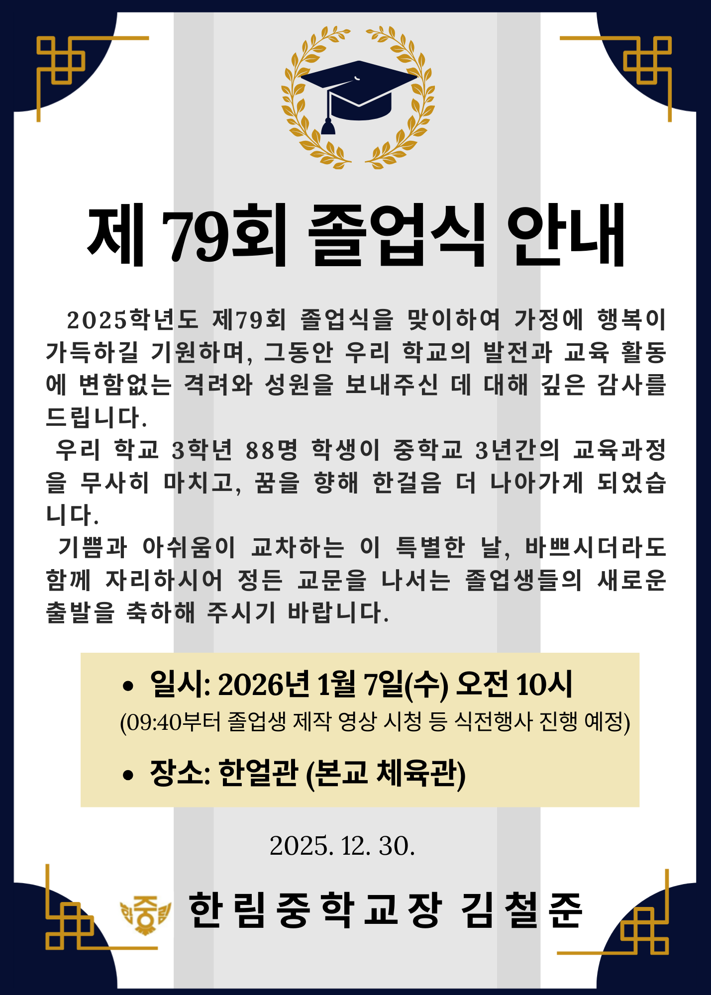 [모시는 글] 2025학년도 제79회 졸업식 안내