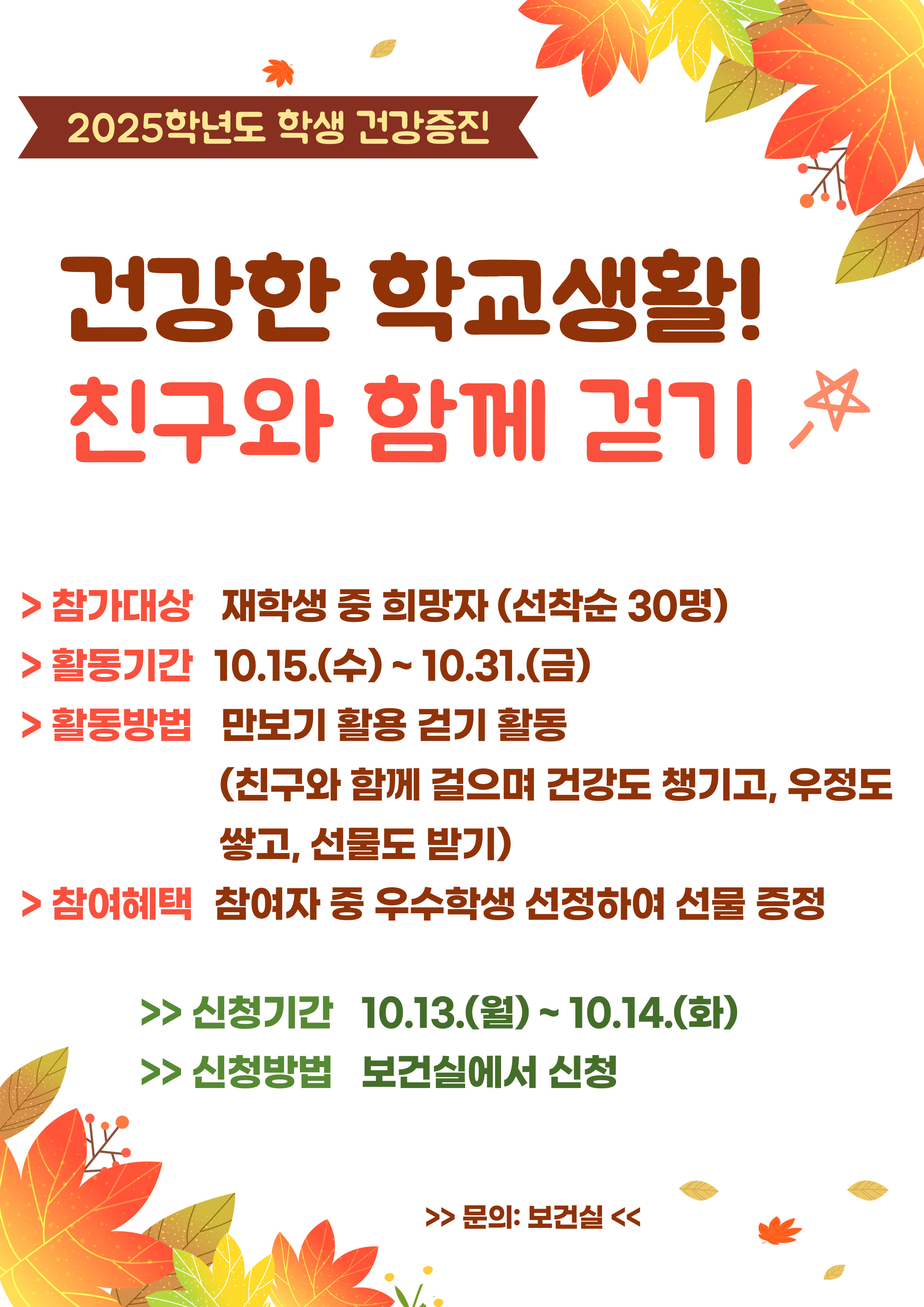 [학교활동] '건강한 학교생활! 친구와 함게 걷기' 프로그램 안내