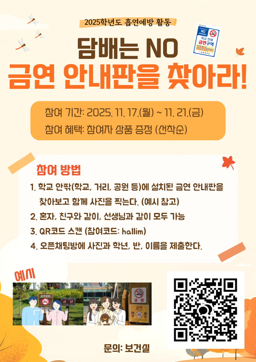 [학교활동] '담배는 NO, 금연 안내판을 찾아라!' 활동 안내