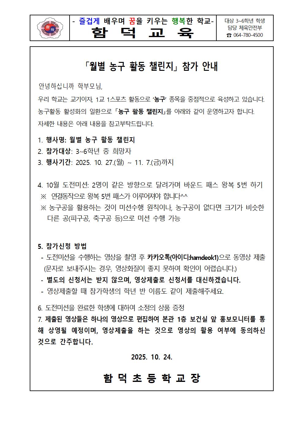 「월별 농구 활동 챌린지」 참가 안내(10월)