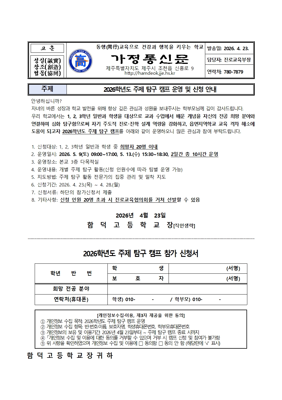2026학년도 주제 탐구 캠프 운영 및 신청 안내 가정통신문.hwp