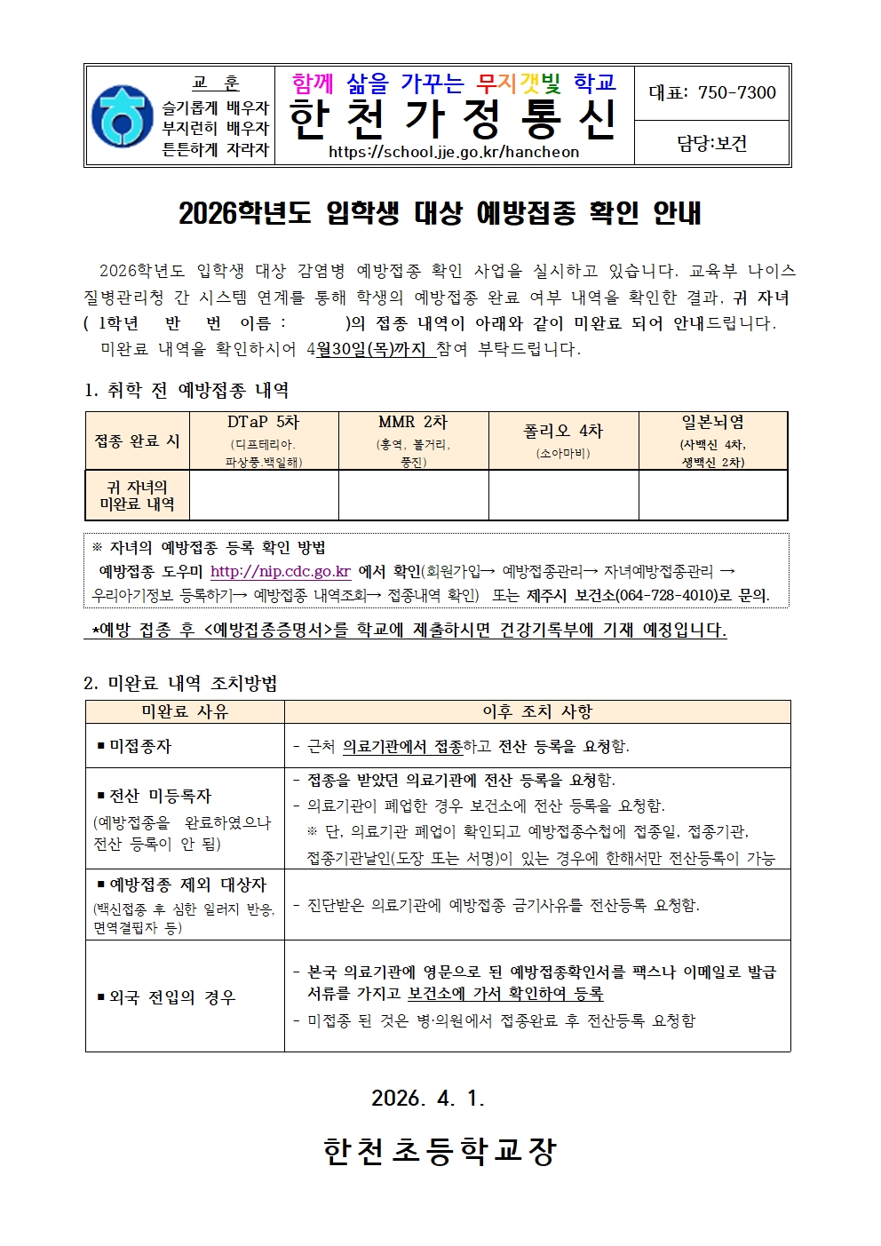 (제주특별자치도교육청가정통신문)2026학년도 다자녀 가정 교육비 지원 신청서(학교 방문 신청용)